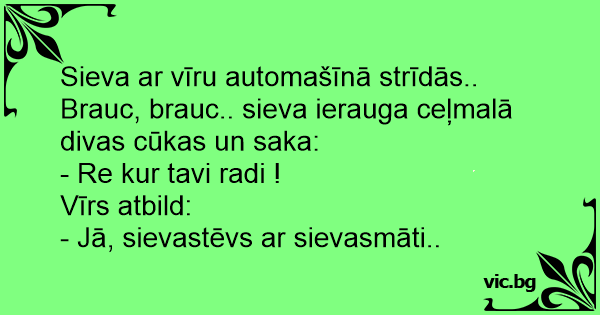 Brauc, brauc.. sieva ierauga ceļmalā divas cūkas un saka: