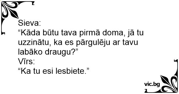 - Каква би била първата ти мисъл, ако ти кажа, че спя с най-добрият ти приятел? - Че си ле-збийка!