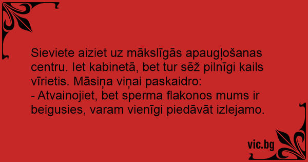 - Atvainojiet, bet sperma flakonos mums ir beigusies, varam vienīgi piedāvāt izlejamo.