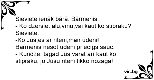 - Kundze, tagad Jūs varat arī kaut ko stiprāku, jo Jūsu riteni tikko nozaga!