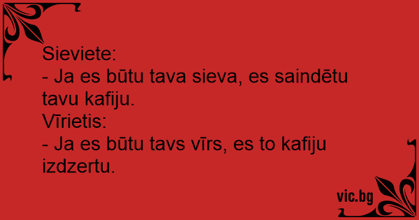 - Ja es būtu tavs vīrs, es to kafiju izdzertu.