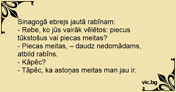 - Piecas meitas, – daudz nedomādams, atbild rabīns.