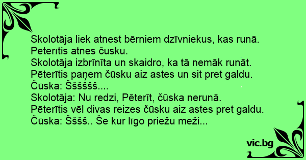 Skolotāja: Nu redzi, Pēterīt, čūska nerunā.