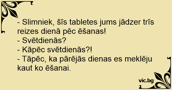 - Slimniek, šīs tabletes jums jādzer trīs reizes dienā pēc ēšanas!