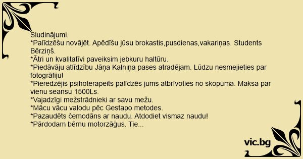 *Palīdzēšu novājēt. Apēdīšu jūsu brokastis,pusdienas,vakariņas. Students Bērziņš.