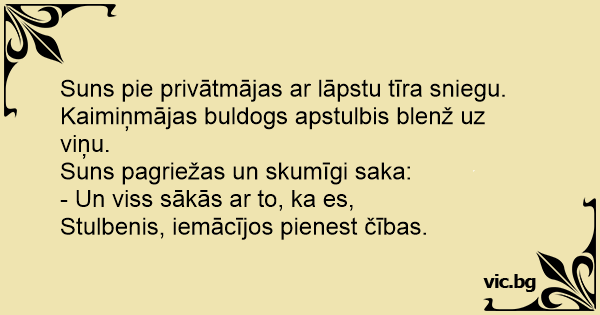 Kaimiņmājas buldogs apstulbis blenž uz viņu.