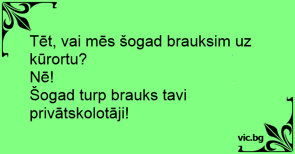 Tēt, vai mēs šogad brauksim uz kūrortu?