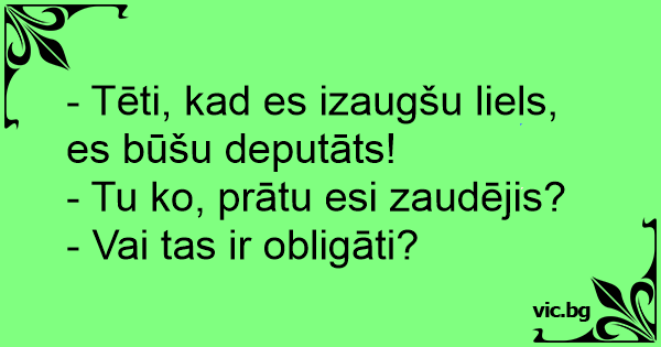 - Tēti, kad es izaugšu liels, es būšu deputāts!