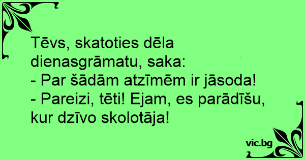 Tēvs, skatoties dēla dienasgrāmatu, saka: