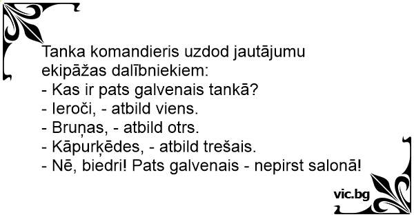 Tanka komandieris uzdod jautājumu ekipāžas dalībniekiem:
