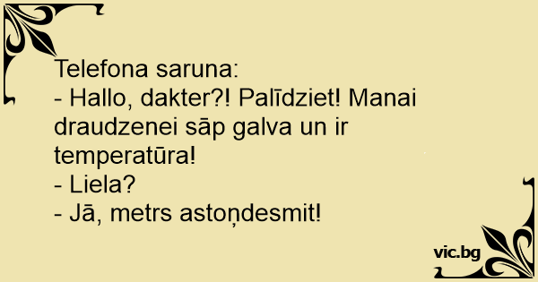 - Hallo, dakter?! Palīdziet! Manai draudzenei sāp galva un ir temperatūra!