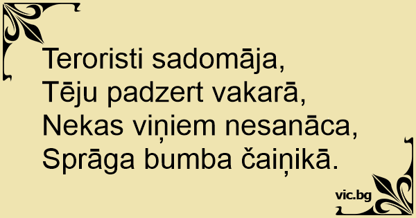 Sprāga bumba čaiņikā.
