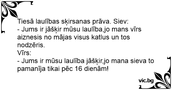 - Jums ir mūsu laulība jāšķir,jo mana sieva to pamanīja tikai pēc 16 dienām!