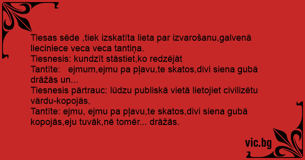 Tiesas sēde ,tiek izskatīta lieta par izvarošanu,galvenā lieciniece veca veca tantiņa.