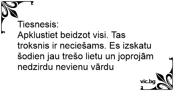 Apklustiet beidzot visi. Tas troksnis ir neciešams. Es izskatu šodien jau trešo lietu un joprojām nedzirdu nevienu vārdu