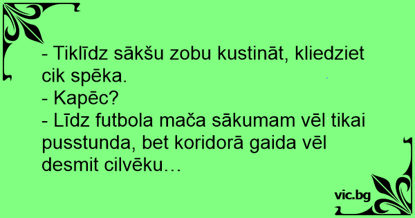 - Līdz futbola mača sākumam vēl tikai pusstunda, bet koridorā gaida vēl desmit cilvēku…