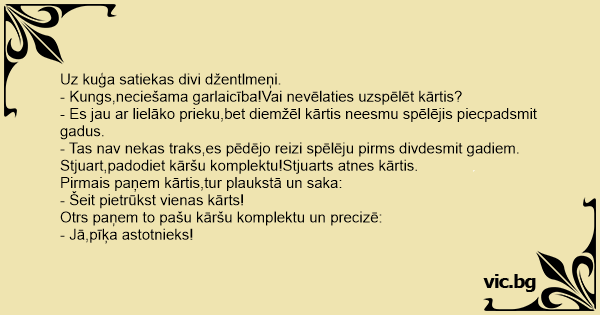 - Kungs,neciešama garlaicība!Vai nevēlaties uzspēlēt kārtis?
