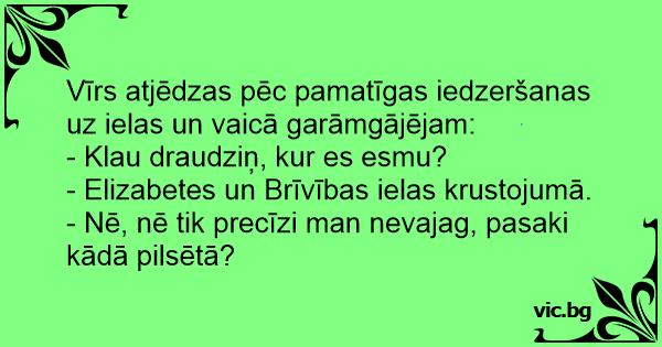 Vīrs atjēdzas pēc pamatīgas iedzeršanas uz ielas un vaicā garāmgājējam: