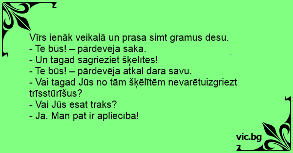 Vīrs ienāk veikalā un prasa simt gramus desu.