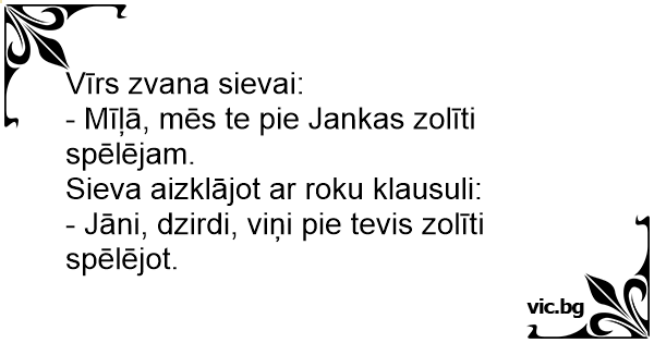 - Jāni, dzirdi, viņi pie tevis zolīti spēlējot.