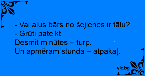 - Vai alus bārs no šejienes ir tālu?