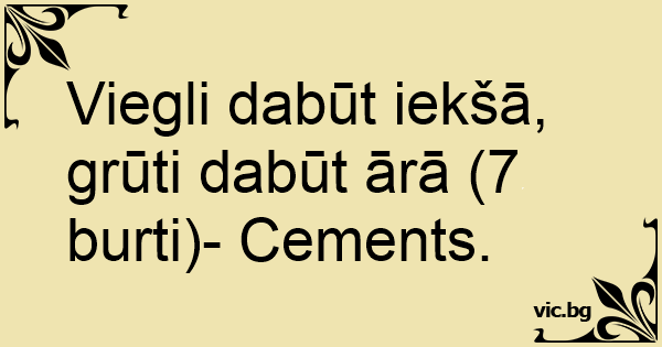 Viegli dabūt iekšā, grūti dabūt ārā (7 burti)- Cements.