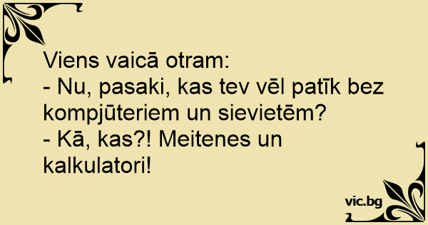- Nu, pasaki, kas tev vēl patīk bez kompjūteriem un sievietēm?
