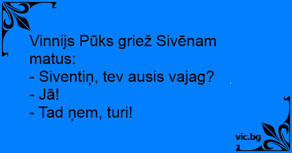 - Siventiņ, tev ausis vajag?