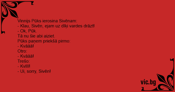 - Klau, Sivēn, ejam uz dīķi vardes drāzt!