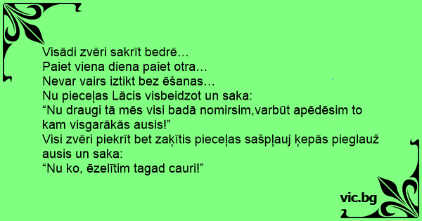 “Nu draugi tā mēs visi badā nomirsim,varbūt apēdēsim to kam visgarākās ausis!”