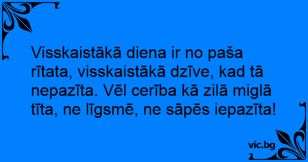 Visskaistākā diena ir no paša rītata, visskaistākā dzīve, kad tā nepazīta. Vēl cerība kā zilā miglā tīta, ne līgsmē, ne sāpēs iepazīta!