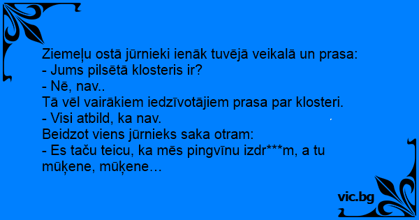 - Es taču teicu, ka mēs pingvīnu izdr***m, a tu mūķene, mūķene…