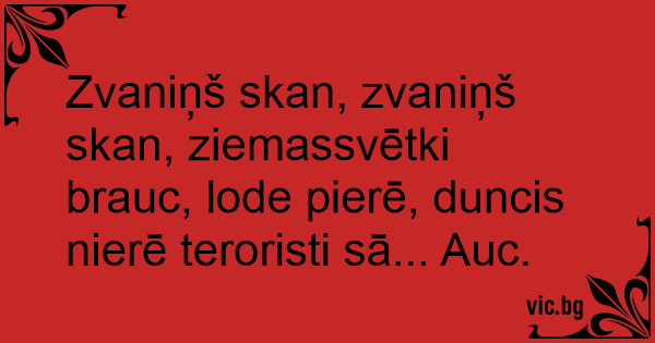 Zvaniņš skan, zvaniņš skan, ziemassvētki brauc, lode pierē, duncis nierē teroristi sā... Auc.