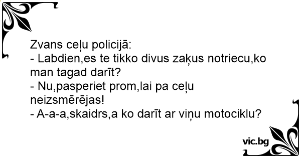 A farmer gets a phone call from his son. Обаждане в КАТ: - Ало, полиција? Удари две кокошке, што да праву? C'est une blonde qui vient d'écraser un poulet. Elle se rend à la ferme la plus proche et dit au fermier : Je viens d'écraser un poulet, je suis désolée, vraiment... - Bah c'est pas grave ma bonne... - Alio. Policija? Aš porą žąsinų numušiau, kur juos dėti? - Na, numeskite juos į pakelę. - Aišku. O ką daryt su motociklu?