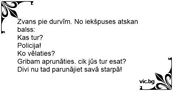 Zvans pie durvīm. No iekšpuses atskan balss: