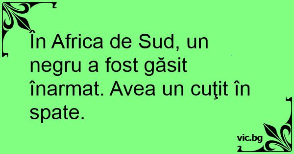 În Africa de Sud, un negru a fost găsit înarmat. Avea un cuţit în spate.