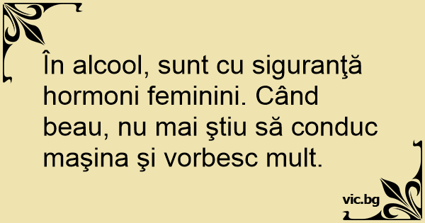În alcool, sunt cu siguranţă hormoni feminini. Când beau, nu mai ştiu să conduc maşina şi vorbesc mult.