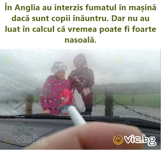 В Англия забраниха пушенето в кола, ако вътре има деца. Само че не са отчели, че времето понякога е адски гадно.