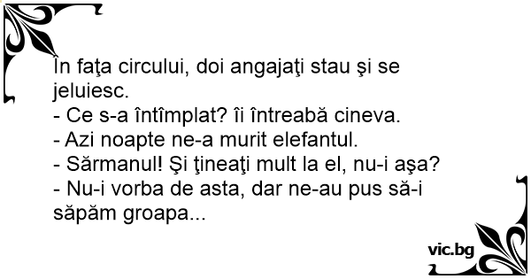 În faţa circului, doi angajaţi stau şi se jeluiesc.