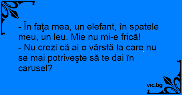 - În faţa mea, un elefant, în spatele meu, un leu. Mie nu mi-e frică!