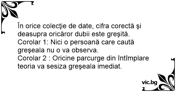 Corolar 2 : Oricine parcurge din întîmplare teoria va sesiza greşeala imediat.
