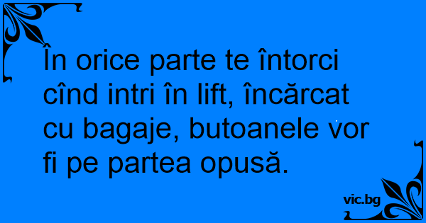 În orice parte te întorci cînd intri în lift, încărcat cu bagaje, butoanele vor fi pe partea opusă.