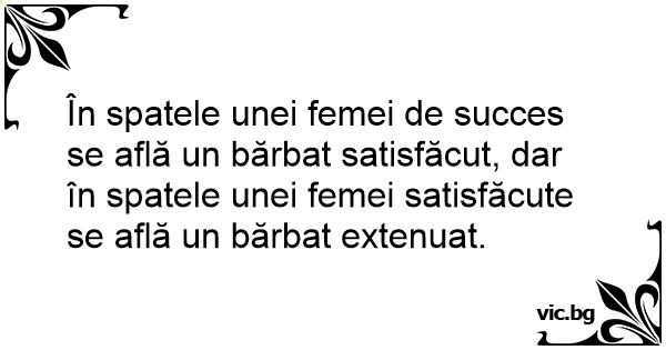 În spatele unei femei de succes se află un bărbat satisfăcut, dar în spatele unei femei satisfăcute se află un bărbat extenuat.