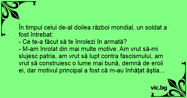 În timpul celui de-al doilea război mondial, un soldat a fost întrebat: