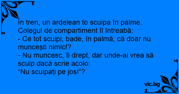 - Nu muncesc, îi drept, dar unde-ai vrea să scuip dacă scrie acolo: