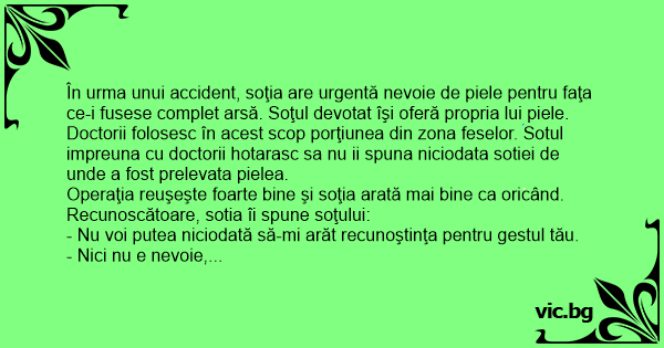 Operaţia reuşeşte foarte bine şi soţia arată mai bine ca oricând.