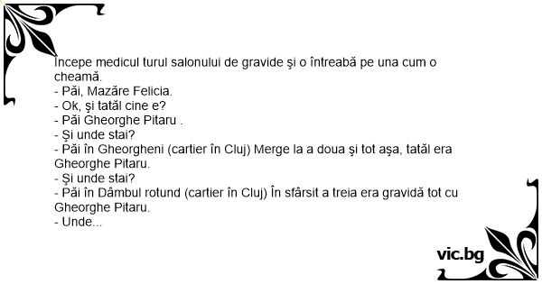Începe medicul turul salonului de gravide şi o întreabă pe una сuм o cheamă.
