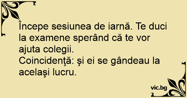 Începe sesiunea de iarnă. Te duci la examene sperând că te vor ajuta colegii.