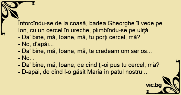 - Da' bine, mă, Ioane, de cînd ţi-oi pus tu cercel, mă?