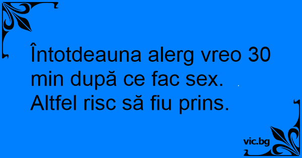 Întotdeauna alerg vreo 30 min după ce fac sеx. Altfel risc să fiu prins.